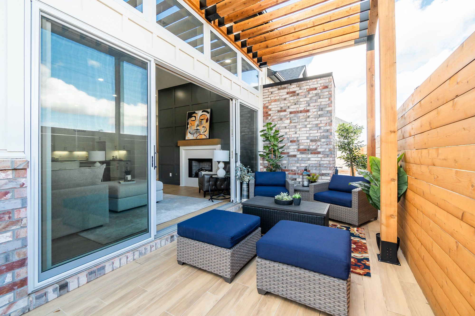 Large sliding patio door to seamlessly merge indoor and outdoor spaces.